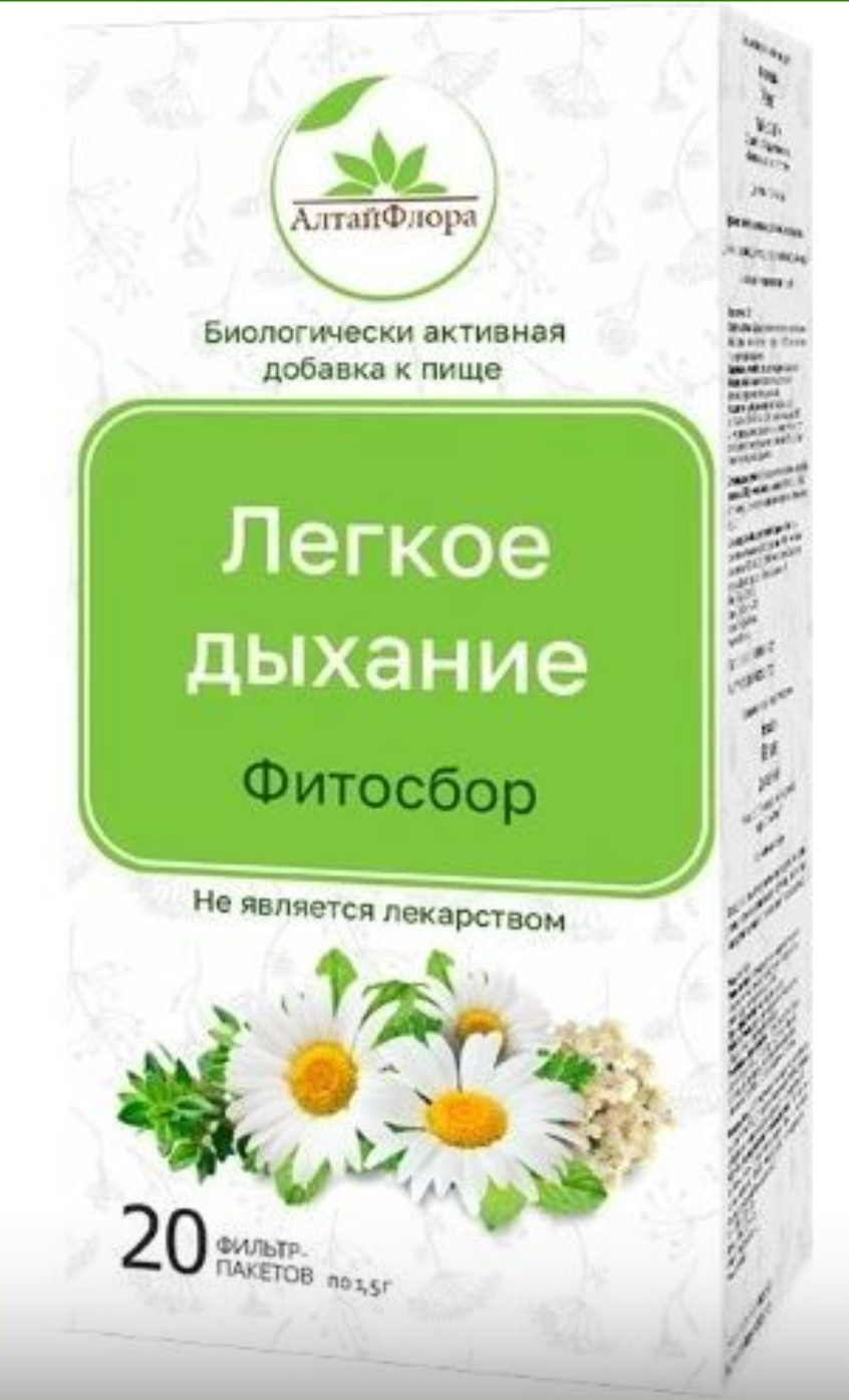 🌿 Фитосбор Легкое дыхание БАД Алтайфлора 20 пакетиков 🍁Фитосбор "Легкое дыхание" содержит такие травы, как ромашка, череда, душица и другие. Они обладают отхаркивающими, противовоспалительными и антимикробными свойствами. Фитосбор направлен на улучшение работы органов дыхательной системы. 🌼 Состав трава тысячелистника обыкновенного, листья мать-и-мачехи, цветки ромашки аптечной, трава тимьяна ползучего (чабреца), трава душицы обыкновенной, трава череды трёхраздельной.