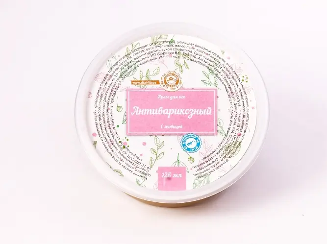🪄Антиварикозный с живицей (крем), 125 мл 💕Конский каштан восстанавливает и укрепляет стенки кровеносных сосудов, тонизирует вены, защищает от воспалений, улучшает венозный кровоток, отток лимфы, снижает пронициаемость и ломкость капилляров, болевые ощущения, судороги, отеки, препятствует образованию тромбов, придает ногам ощущение легкости. 💎Применение: нанасти мягкими массажными движениями на 20-30 минут, остатки удалить сухой салфеткой. 🔔Состав: воск пчелиный, масло льна, конский каштан, полынь горькая, подмор пчелиный, живица кедровая, пихтовое масло, прополис.