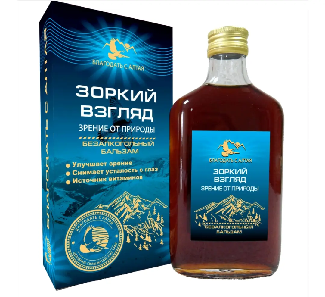 🦋Бальзам безалкогольный «Зоркий взгляд» (Зрение от природы) 💕Бальзам способствует уменьшению усталости глаз, улучшает зрение, ускоряет обновление сетчатки глаз, помогает в профилактике глазных заболеваний, восполняет дефицит витаминов. ✨Черника – богата витаминами A, C, PP и витаминами группы B, уменьшает усталость глаз, ускоряет обновление сетчатки глаз. ✨Очанка – улучшает кровоснабжение мозга, снижает внутреннее давление, улучшает зрение. ✨Корневище пырея – применяют при снижении зрения. 💎Рекомендации по применению: употреблять по 1- 2 столовой ложке (15 мл) с чаем, соками, минеральной водой, молоком и другими напитками 3 раза в день во время еды. Продолжительность приема 1 месяц. Перед употреблением взбалтывать. 🔔Состав: плоды шиповника, плоды черники, трава очанки, цвет ромашки, лист малины, плоды черемухи, лист крапивы, корневища пырея, лист земляники, трава чабреца, вода очищенная, сахар-песок, мёд натуральный цветочный, плоды черноплодной рябины, кислота лимонная.