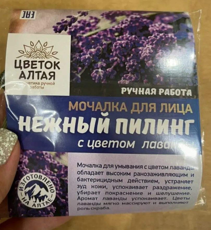 😍 Мочалка для лица " Нежный пилинг " 🦋Мочалка для умывания с цветом лавандь обладает высоким ранозаживляющим и бактерицидным действием, устраняет зуд кожи успокаивает раздражение, убирает покраснение и шелушение. Аромат лаванды успокаивает Цветы лаванды мягко массируют и выполняют роль скраба 🦋Льняная мочалка с натуральным мылом оказывает массажный эффект на кожу, не раздражая и не повреждая её, улучшает циркуляцию крови и усиливает обмен веществ в клетках кожи, очищает поры и создаёт эффект пиллинга, что способствует омоложению и оздоровлению кожи. 🪄Способ применения: Намочить, использовать на влажную кожу лица, после использования расправить, не отжимать. ✨ Хранить в подвешенном состоянии. 🔔Состав: мыльная основа, трава лаванды алтайской, кокосовое масло, ароматизатор