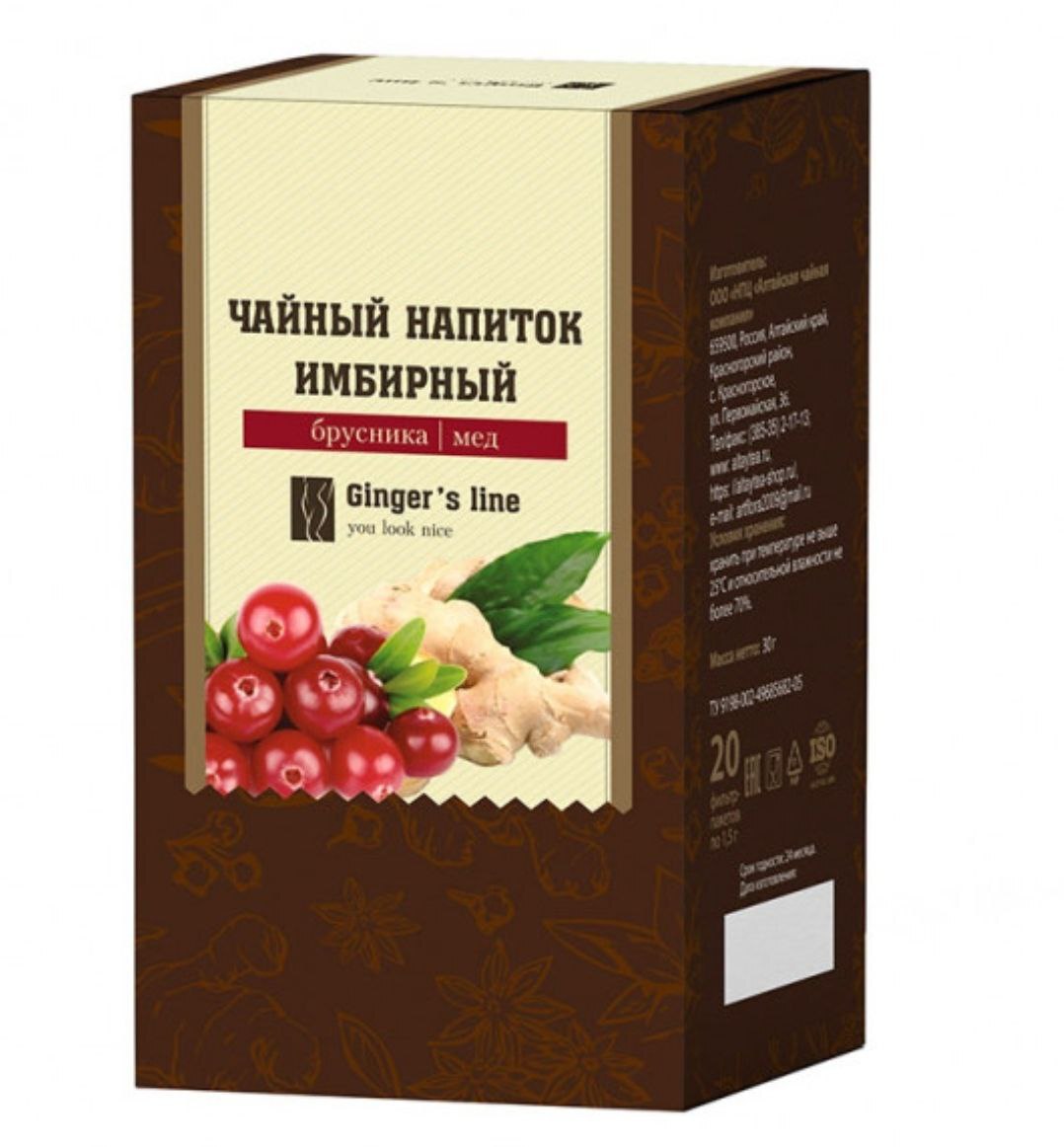 🌿 Чай с брусникой и имбирем – вкусная профилактика! 🔶Эта ягода с терпким горьковатым вкусом во все времена считалась кладезем полезных веществ. В ней большое содержание витамина А и С. Поэтому, если вы часто болеете простудными заболеваниями, то можно прислушаться к совету фитотерапевтов, которые рекомендуют включить эту ягоду в свой рацион. Помимо этого профилактического свойства она оказывает тонизирующее, жаропонижающее, мочегонное воздействие на организм. 🔷Брусника с медом еще во времена наших прабабушек применялось как народное средство, облегчающее симптомы простуды. Как было сказано выше, все дело в составе этих компонентов. Например, продукт пчелиного производства содержит природный антибиотик, который хоть и не заменяет привычные нам лекарства, но все же помогает уменьшить воспалительный процесс в организме, оказывает противомикробное и противовирусное воздействие. ♦️ Состав:Корень имбиря, лист брусники, корица, донник, корень пиона, боровая матка (ортилия однобокая), натуральный ароматизатор меда