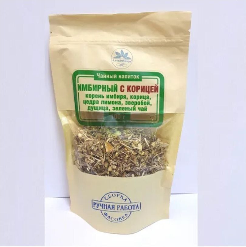 🌿 Чайный напиток "Имбирный с корицей" 100г. Ручная сборка. ♦️ Состав: Имбирь корень, корица, цедра лимона, зверобой (трава), душица (трава), зеленый чай, медовые гранулы.