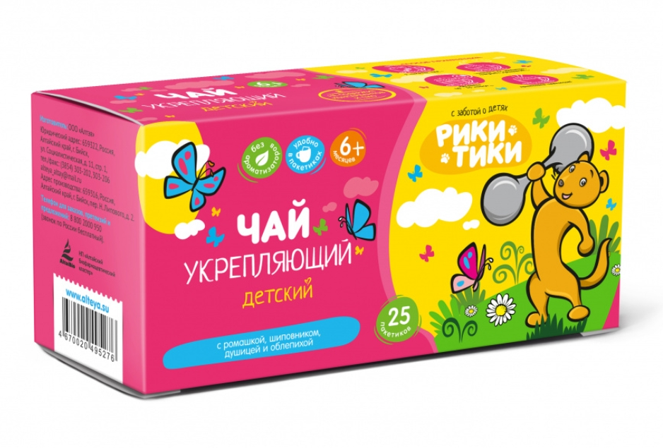 💫Рики Тики Травяной чай детский «УКРЕПЛЯЮЩИЙ» 💡Витаминный чай «Рики Тики» – это вкусный и полезный напиток, разработанный специально для детей. 100% натурально! 💡В этом бодрящем напитке сочетаются полезные травы и ягоды — мощные источники витаминов. Основа чайной композиции — черный чай, который богат тонизирующими веществами и обладает приятным насыщенным вкусом без горечи. Не содержит консервантов и ГМО. ✨Состав: цветки ромашки, плоды шиповника, трава чабреца, чай черный, плоды фенхеля, трава душицы, лист облепихи, цветки лаванды.