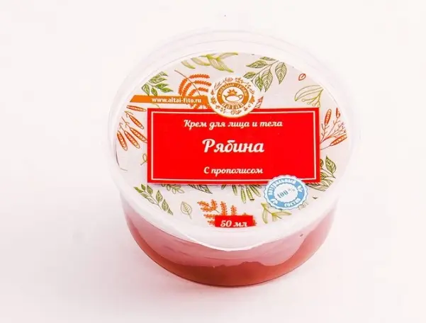 🪄 крем для лица и тела Рябина с прополисом (крем), 50 мл 💕Ягоды рябины обладают бактерицидными и противовоспалительными свойствами, прекрасно очищают кожный покров, сужает поверхность пор, эффективно отбеливают кожу лица, восстанавливают естественные процессы омоложения, устраняют жирный блеск, удаляют прыщи, улучшают состояние кожи лица, благотворно влияют на подкожное кровообращение. 💎Применение: нанести мягкими массажными движениями на 20-30 минут, остатки удалить сухой салфеткой. 🔔Состав: воск пчелиный, масло льна, экстракт ягод рябины, эфирные масла, прополис, витамин Е.