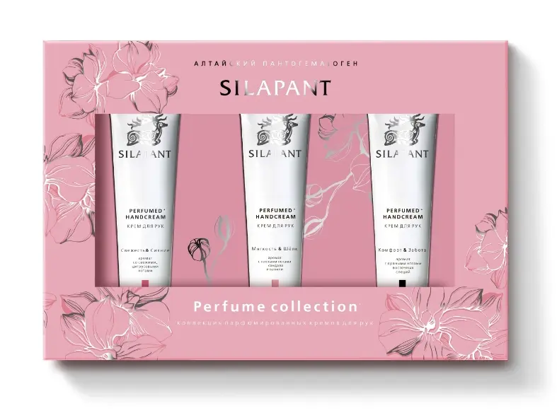 😍Коллекция парфюмированных кремов для рук «Perfume collection» Силапант 💣Набор из трех эксклюзивных кремов "Силапант" для рук с улучшенной формулой из комплекса алтайского пантогематогена, натуральных масел, церамидов и пантенола. Имеет приятную текстуру, обеспечивает интенсивное увлажнение, восстановление и защиту нежной кожи рук. Изысканные ноты легендарных ароматов дарят ощущение роскошного шлейфа в течение всего дня. Рекомендовано для всех типов кожи. 💎Состав набора: ✨Крем для рук «Свежесть и сияние» Аромат со свежими цитрусовыми нотами Объем: 30 мл ✨Крем для рук «Мягкость и шелк» Аромат с теплыми нотами сандала и ванили Объем: 30 мл ✨Крем для рук «Комфорт и забота» Аромат с пряными нотами восточных специй Объем: 30 мл 💕Активные компоненты: ✨ПАНТОГЕМАТОГЕН способствует омоложению кожи, ускоряет процессы замены старых клеток новыми, помогает коже вновь выглядеть молодой и свежей. ✨АЛЛАНТОИН оказывает смягчающее и увлажняющее действие на кожу, стимулирует обновление клеток эпидермиса. ✨МАСЛО ШИ отлично увлажняет, обеспечивает питание, смягчает кожу. ✨МИНДАЛЬНОЕ МАСЛО питает, успокаивает, увлажняет и выравнивает кожу. Придает коже упругость и бархатистость. ✨ПАНТЕНОЛ обладает увлажняющими свойствами. Способствует восстановлению клеток кожи. ✨КОМПЛЕКС ЦЕРАМИДОВ восстанавливают барьерные функции кожи и предотвращают избыточную потерю влаги. ✨БИОФЕРМЕНТИРОВАННАЯ БРУСНИКА удерживает влагу, помогает поддерживать здоровый эпидермальный барьер кожи.
