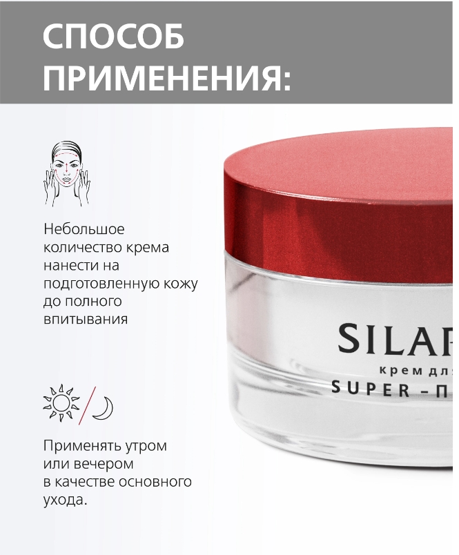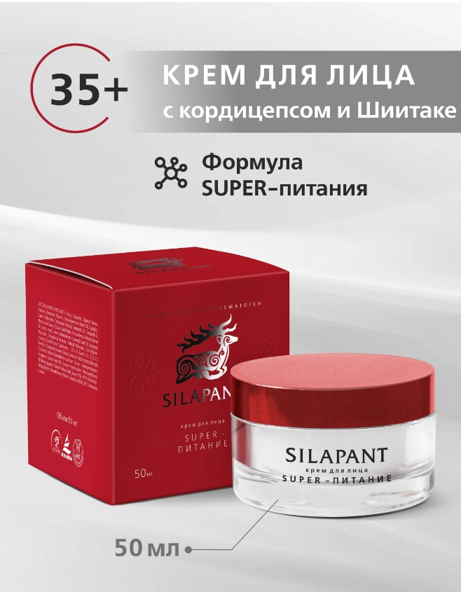 🥰Крем для лица "Суперпитание " СИЛАПАНТ" 🦋Крем интенсивно питает и увлажняет кожу, препятствуя гидролипидному обезвоживанию, помогая сохранить важные функции кожи. 🦋Крем содержит большое количество натуральных компонентов: масла Ши, персика, какао, Каранджи, концентраты грибов Шиитаке, Кордицепс, Ганодерма, Тремелла. Замедляет процесс старения, снимает воспаления, способствует снижению возрастной пигментации, обеспечивает коже лица полноценное питание. 🪄Масла Ши и Каранджи активно питают и увлажняют кожу, смягчают, устраняют сухость и шелушение. 🪄Концентрат Шиитаке, Кордицепса, Ганодермы и Тремеллы обладает антиоксидантным свойством, помогает против воспалений и угрей, омолаживает кожу, устраняет покраснения кожи. 🪄Пантогематоген запускает в коже процессы омоложения на клеточном уровне. 💎 Способ применения: Небольшое количество крема нанести на подготовленную кожу до полного впитывания. Применять утром или вечером в качестве основного ухода.
