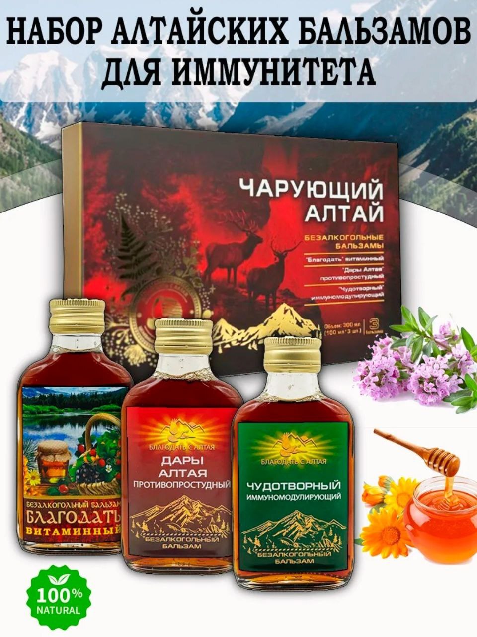 🌿 Набор из трех Безалкогольных бальзамов на травах горного Алтая серии " Чаркющий Алтай " красный.