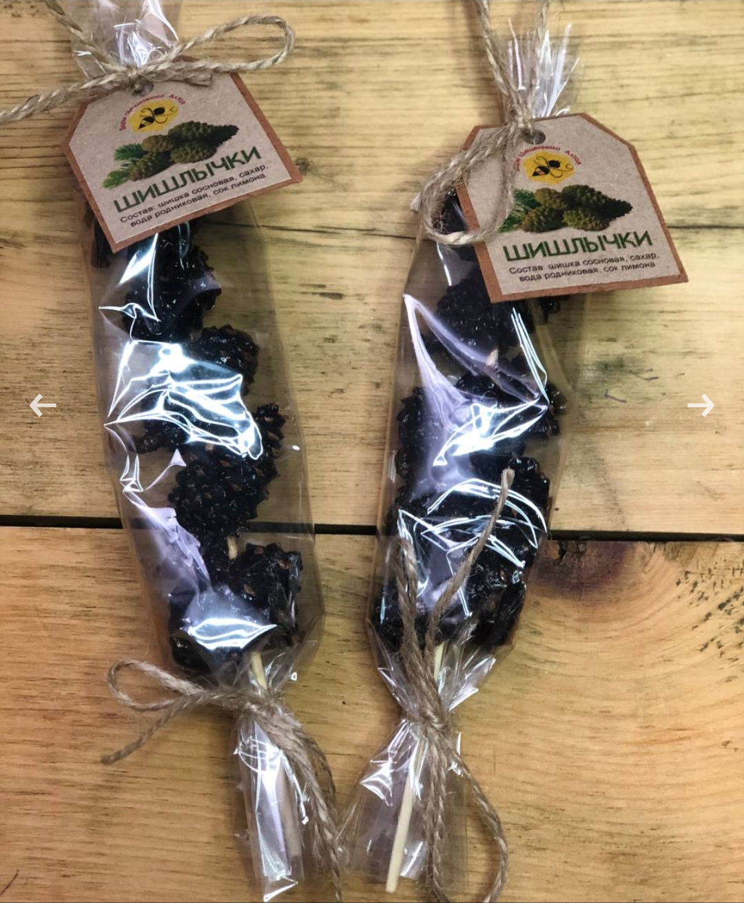 💕Шишлычки из сосновых шишек 🌸Необычная алтайская сладость — сосновые шишки на деревянном шампуре. 🍓Сосновые шишки широко известны своими полезными свойствами, поэтому, как и варенье из сосновых шишек, шишлычки содержат в себе целый набор всевозможных витаминов и микроэлементов, благоприятно влияющих на организм человека. 💕В их числе: витамины С, В, РР, К, фитонциды, липиды, танины, железо, фосфор и многое другое. 💕Для приготовления сосновых шишлычков мы используем природный консервант – сахар, благодаря чего сохраняем все полезные свойства хвойного дерева. Рецепт продукта не содержит крахмала или загустителя.