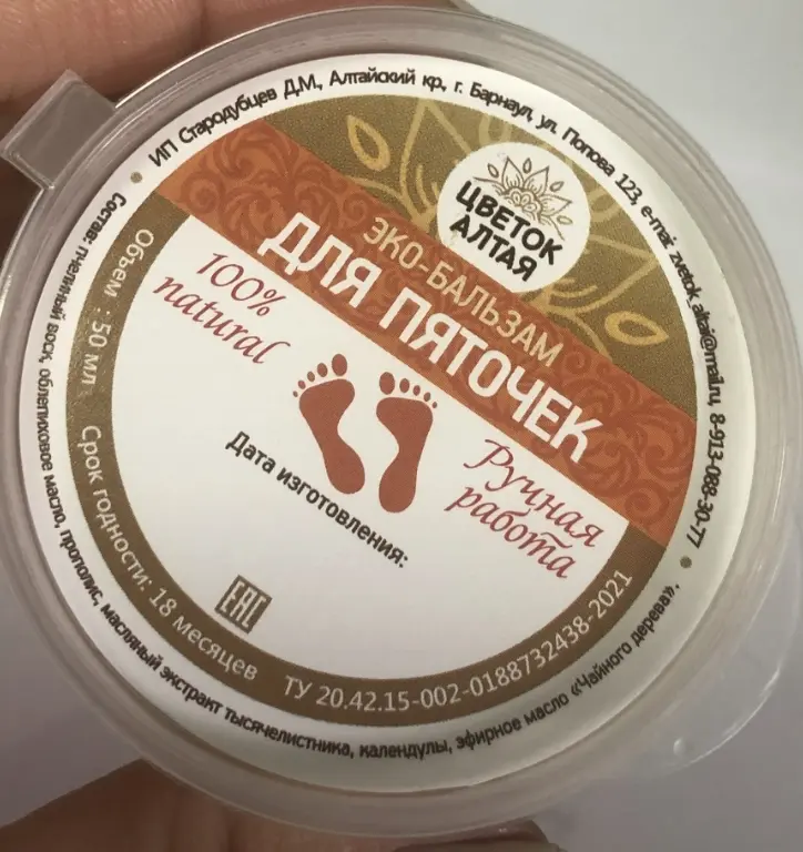 🥰 Эко-бальзам " Для пяточек " 🦋Эко-бальзам «Для пяточек» на основе пчелиного воска, прополиса, облепихового масла экстрактов трав и эфирного масла чайного дерева. 🦋Натуральный эко-бальзам для смягчения огрубевшей кожи ног идеально подходит для ухода за стопами, делая кожу более мягкой и гладкой 🦋Используется при трещины на пятках, сухих мозолях, натоптышах, трофических язвах солнечных ожогах и др. 🦋Оказывает ранозаживляющее, смягчающее противогрибковое, болеутоляющее действие Хорошо смягчает и увлажняет стопы ног избавляет от трещин, шелушения и других проблем. 🔔Состав: пчелиный воск. облепиховое масло прополис, масляный экстракт тысячелистника. календулы, эфирное масло «чайного дерева»