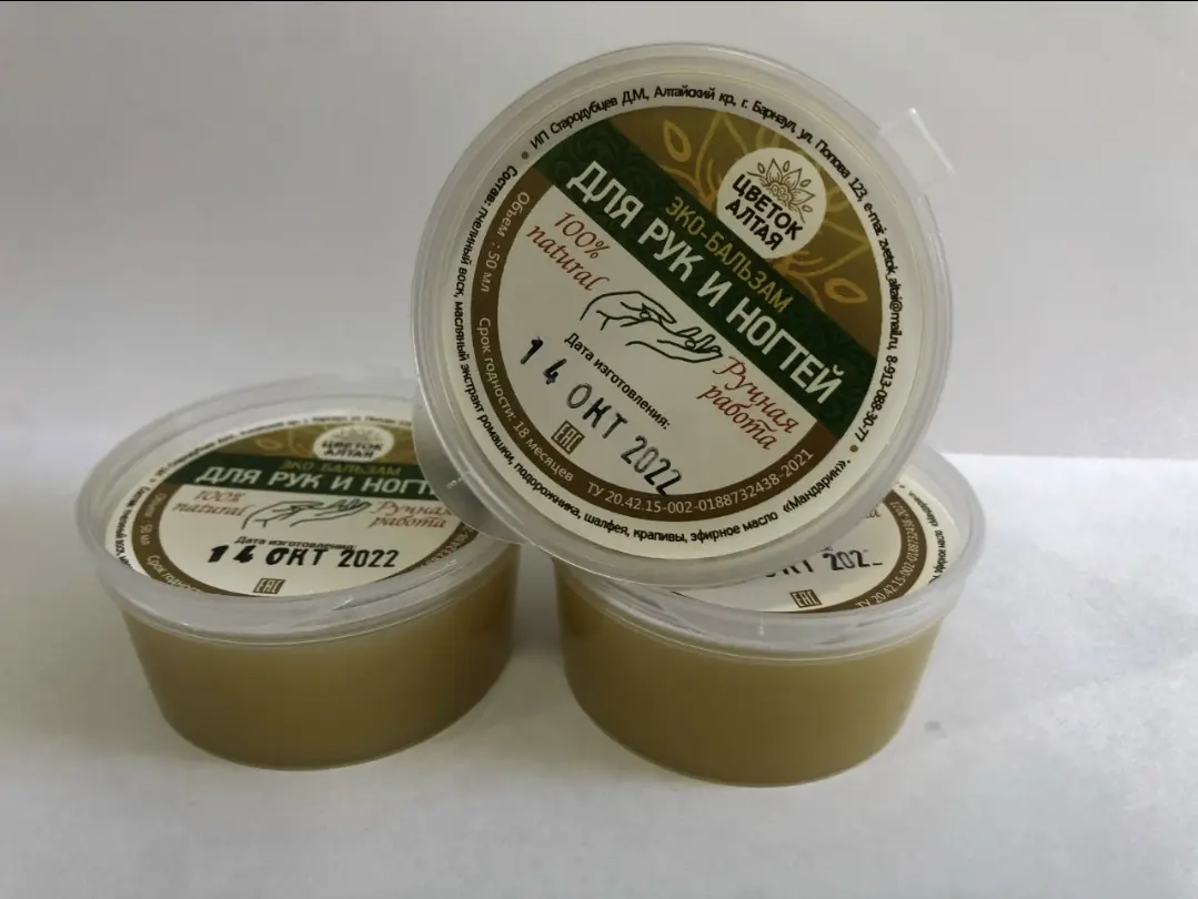 🥰 Эко-бальзам " Для рук и ногтей " 🦋Эко-бальзам «Для рук и ногтей» на основе пчелиного воска, экстрактов трав и мандаринового эфирного масла. 🦋При регулярном использовании эко-бальзама разглаживает и увлажняет кожу рук, повышает упругость кожи. 🦋Имеет ярко выраженный витаминизирующий эффект. 🦋Придает коже красивый, здоровый оттенок. 🦋Используется при сухости и шелушении рук, пигментации, расслоении и ломкости ногтей, защищает кожу рук от ультрофиолета. Оказывает смягчающее защитное, бактерицидное, омолаживающее действие. 🔔Состав: Пчелиный воск, масляный экстракт ромашки, подорожника, шалфея, крапивы эфирное масло «Мандарина»
