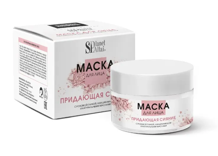 😍Маска для лица с розовой глиной «Придающая сияние» Planet SPA Altai 🪄Маска с розовой глиной способствует глубокому очищению и обеспечивает экспресс -увлажнение кожи лица, придает коже сияющий вид. 🪄Комплекс активных компонентов регулирует выработку себума, способствует клеточному обновлению , успокаивает кожу. 🪄Обеспечивает мгновенное преображение кожи лица. 🪄Маска подходит для всех типов кожи. 🍓Маска для лица с розовой глиной «Придающая сияние» Planet SPA Altai , 50 мл разработана для эффективной борьбы с несовершенствами. Входящие в состав компоненты способствуют глубокому очищению кожи и обеспечивают экспресс-увлажнение. Кожа лица становится чистой, приобретает свежесть и сияние. Маска мгновенно и заметно преображает вашу кожу благодаря активному комплексу из розовой глины, каолина, ниацинамида и натурального увлажняющего фактора, который обеспечивает продолжительный увлажняющий эффект, регулирует выработку кожного себума, ускоряет клеточное обновление и успокаивает кожу. Подходит для всех типов кожи. ✨Розовая глина — уникальное природное средство, обладает высокой абсорбирующей способностью, придаёт сияние коже, выравнивает цвет лица, мягкий эксфолиант, поддерживает гидролипидный баланс, обладает успокаивающими свойствами. ✨Масла кокоса, Ши, макадамии и авокадо увлажняют и препятствует испарению влаги. Обладают успокаивающими и восстанавливающими свойствами ✨Ниацинамид ускоряет клеточное обновление, участвует в синтезе коллагена, придает лицу свежий отдохнувший вид и оптимизирует питание кожи изнутри. ✨Аллонтоин увеличивает влагоудерживающую способность кожи, успокаивает ее, стимулирует обновление клеток эпидермиса, ✨Натуральный Увлажняющий фактор представляет собой сбалансированный комплекс низкомолекулярных гигроскопичных молекул. Присутствие этих молекул обеспечивает продолжительный эффект увлажнения, компоненты притягивают влагу и поддерживают оптимальный гидробаланс эпидермиса. 💕Способ применения: Рекомендуется использовать 1-3 раза в неделю на предварительно очищенной коже лица. Нанесите средство плотным слоем на чистую кожу лица на 10-20 мин., затем смыть теплой водой или спонжем.