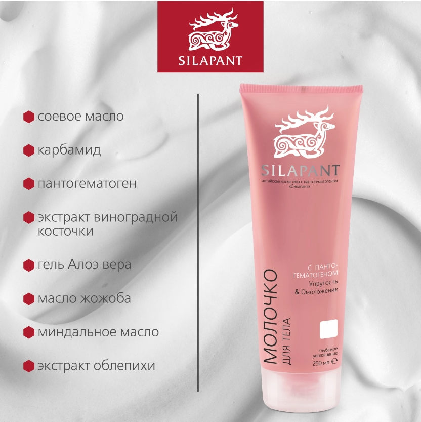🥰Силапант Молочко для тела 🦋смягчает, успокаивает, обеспечивает глубокое увлажнение и питание кожи 🦋восстанавливает упругость и эластичность кожи 🦋омолаживает и защищает кожу от вредного воздействия окружающей среды 🦋легко впитывается, придавая коже мягкость и шелковистость 💕Активные компоненты: 🪄Гель алоэ-вера оказывает заживляющее, бактерицидное, тонизирующее, противовоспалительное и смягчающее действия. 🪄Масло виноградной косточки обладает выраженными увлажняющими и антиоксидантными действиями. 🪄Карбамид (мочевина) натуральный увлажнитель активного действия, абсорбирует влагу из воздуха и сохраняет ее в роговом слое кожи, действует как антисептик и проводник активных веществ. 🪄Сорбитол натуральный увлажнитель и смягчающий компонент, придающий коже ощущение бархатистости. 🪄Масло жожоба прекрасный естественный эмульгатор, обладает антиоксидантными свойствами, активизирует выработку эластина, смягчает, увлажняет, осветляет и подтягивает кожу. 🪄Экстракт облепихи богат незаменимыми жирными кислотами, препятствует старению кожи, сбалансировано питает ее. 🪄Пантогематоген Аминокислоты, входящие в состав пантогематогена, осуществляют функцию интенсивного питания и регенерацию клеточных систем кожи, макро- и микроэлементы стимулируют кровообращение, процессы образования новых клеток, предотвращают появление ранних морщин и замедляют процессы старения кожи. 🪄Экстракт амаранта является мощным природным антиоксидантом; содержит жизненно важные для кожи аминокислоты, сахариды, уникальный по увлажняющим свойствам сквален, а также витамины и минералы. 🪄Масло миндальное богато питательными веществами, витаминами А и Е, способствует обновлению клеток кожи, защищает ее от внешних воздействий. 🍓 Способ применения: Легкими массирующими движениями нанесите молочко на очищенную кожу тела.